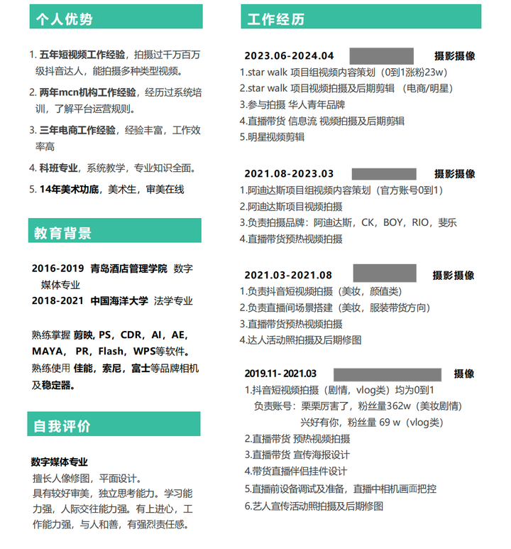 在保持专业性的同时,不妨在简历中适当融入你的个性色彩。无论是通过一句幽默的自我介绍,还是分享一段与职业相关的个人经历或项目介绍,都能让HR感受到你是一个积极向上、正能量满满、有温度的人。