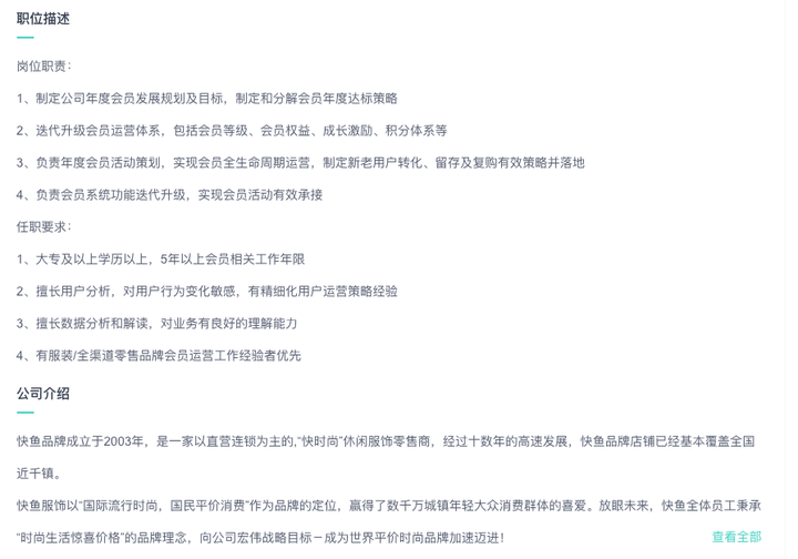 软指标:有服装或全渠道零售品牌会员运营工作经验的人可以优先考虑;