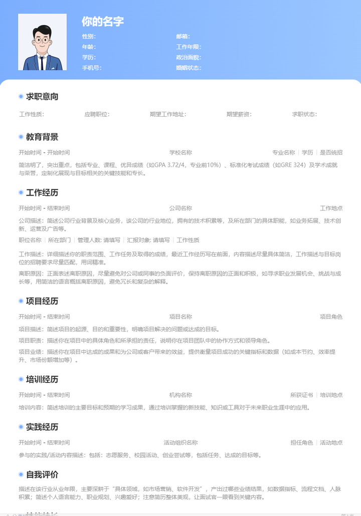 以上的内容在简历中我们称之为 “标准化简历模板” ,>>点击这里 直接使用,并且提供了1000个岗位 "突出关键词" 的工作经历、项目经历案例进行参考并修改。