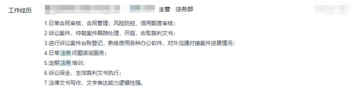 上述图片内容,是“北京某企业一人法务”招聘信息。