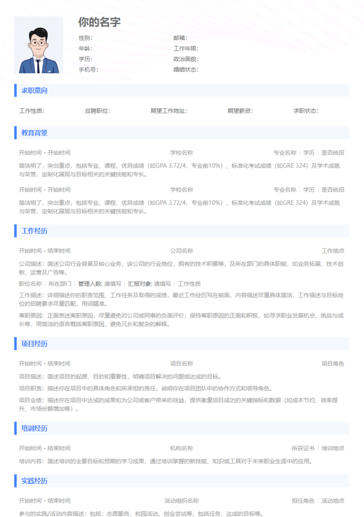 综上所述,如果你觉得还是不知道怎么写 >>点击这里(PC端编辑更方便哦),为大家提供了标准化模板,面试官一眼就能看到想要的关键词信息。