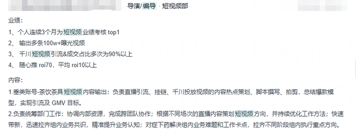 上述图片工作描述出现关键词包括:抖音千川、茶饮茶具、短视频、HR一眼就知道是不是岗位匹配的候选人。