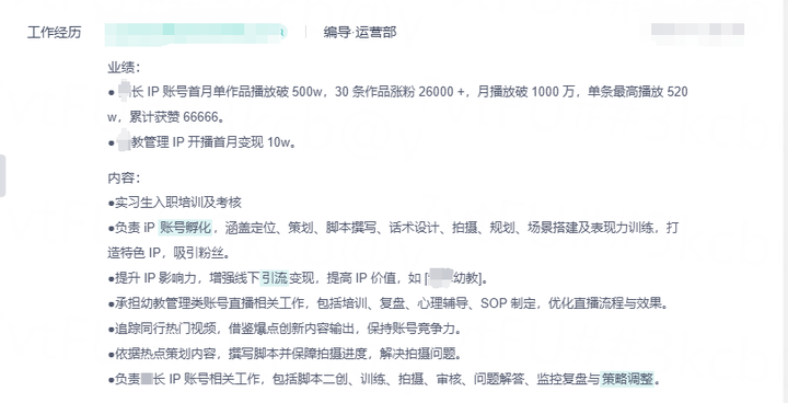 工作内容都说了,但是做那个自媒体平台关键词没有,做那个岗位的关键词基本上全写了,HR会认为你什么都做,相当于什么都不会做。