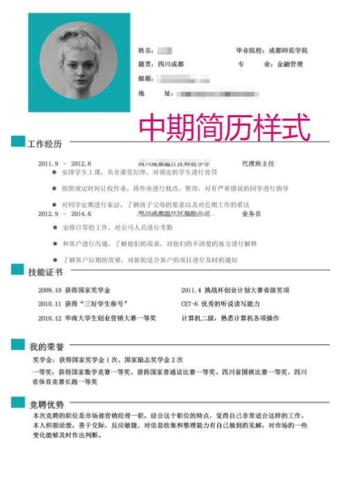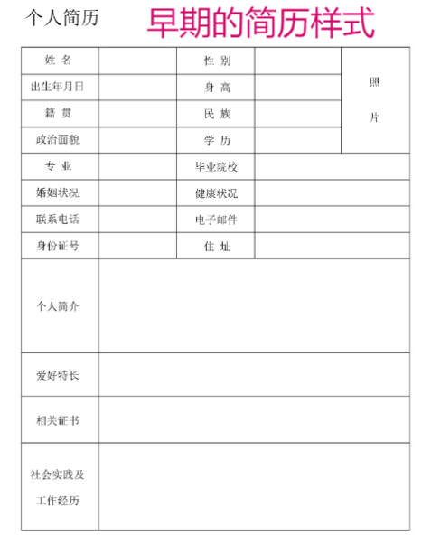 我们看看各个时期的简历样式